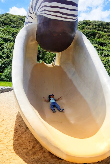 也可到鸚鵡螺溜滑梯玩耍,鸚鵡螺也是頭足類的祖先呦!也是現存的活化石呢!用鸚鵡螺溜滑梯來做為軟絲竹叢產房工作假期體驗的Ending實在太貼切了!