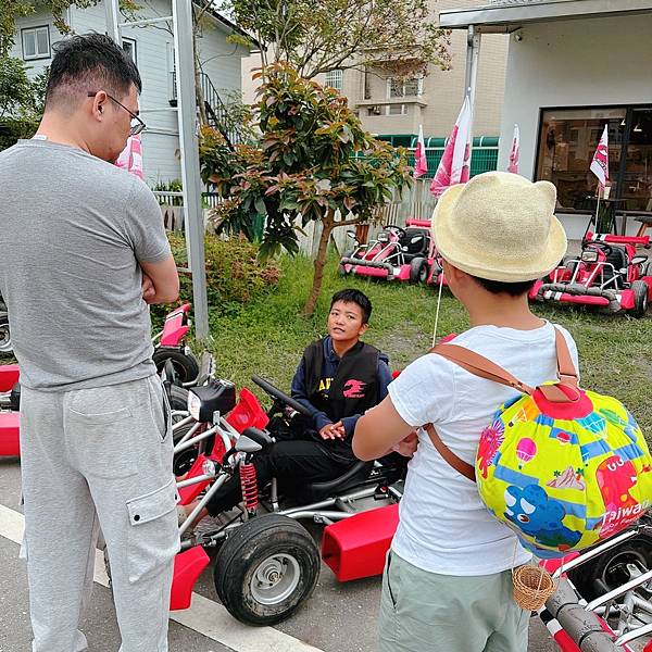 無法騎乘的小朋友也能搭乘教練的車一起出遊去!