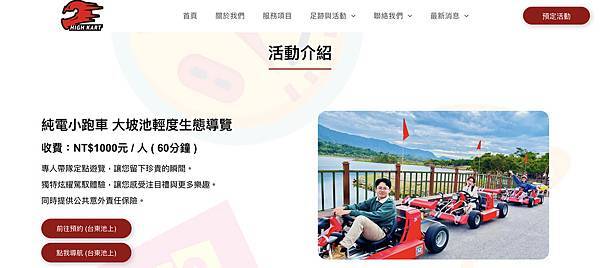 坐上火車到達池上火車站,用嗨咖的純電小跑車來一場大坡池輕度生態導覽!