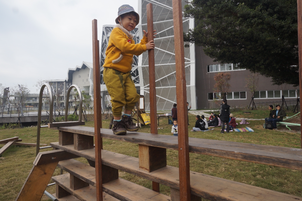 在台江文化中心終身學習棟的前面也有很多小朋友的遊樂設施,都是由木頭做成,感覺好像去到森林遊樂區一般,每個設施都可鍛錬和攀爬,非常適合體力旺盛孩子們呢~