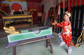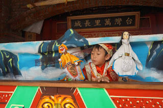突然發現屎蛋最愛的布袋戲戲台,有好多人物,尤其是孫悟空,屎蛋手舞足道,超喜番~