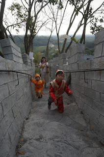屎蛋也太適合古裝了,整個人都貴氣了起來~~媽媽我也選了一個格格裝,,頭上的髮髻好重一直掉下來啦!工作人員交待~不要低頭!做人真的不要隨便低頭啊!但為娘的我看顧屁孩就是要低頭啊~嘆氣...