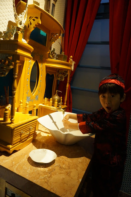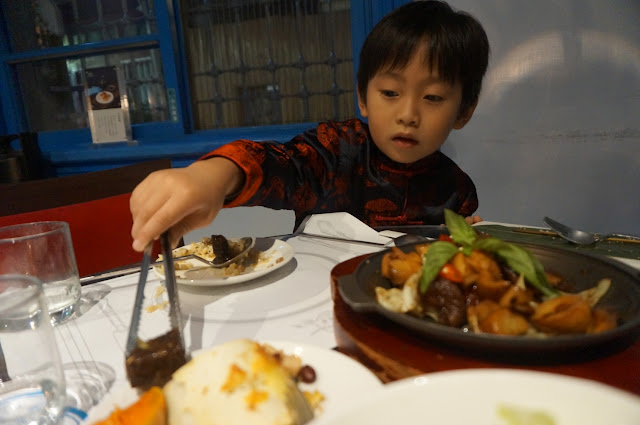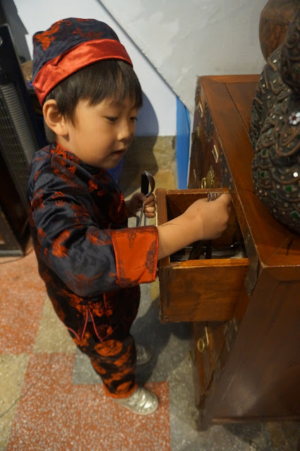 更要自己拿餐具,五歲的年紀就是店小二上身~櫃子也好復古,赤崁壐樓處處是古董啊~