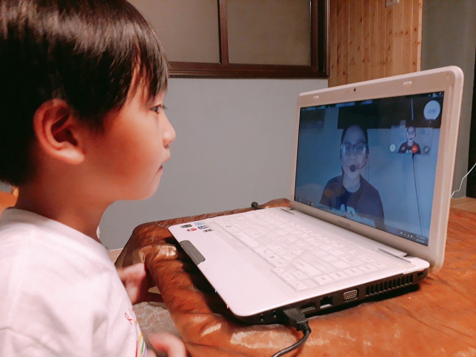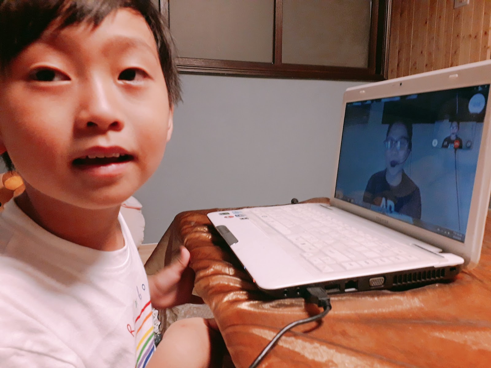 屎蛋一開始見到Yesonline 線上英文真人外師,有點驚喜,一直跟屎蛋媽說電腦裡的人在跟他講話耶!