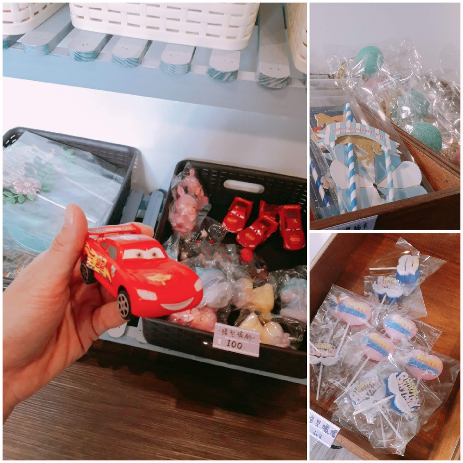 櫃枱也販售好多派對裝飾小物,玲琅滿目,連屁孩的閃電麥坤都有!放在蛋糕上,小朋友一定超開心!