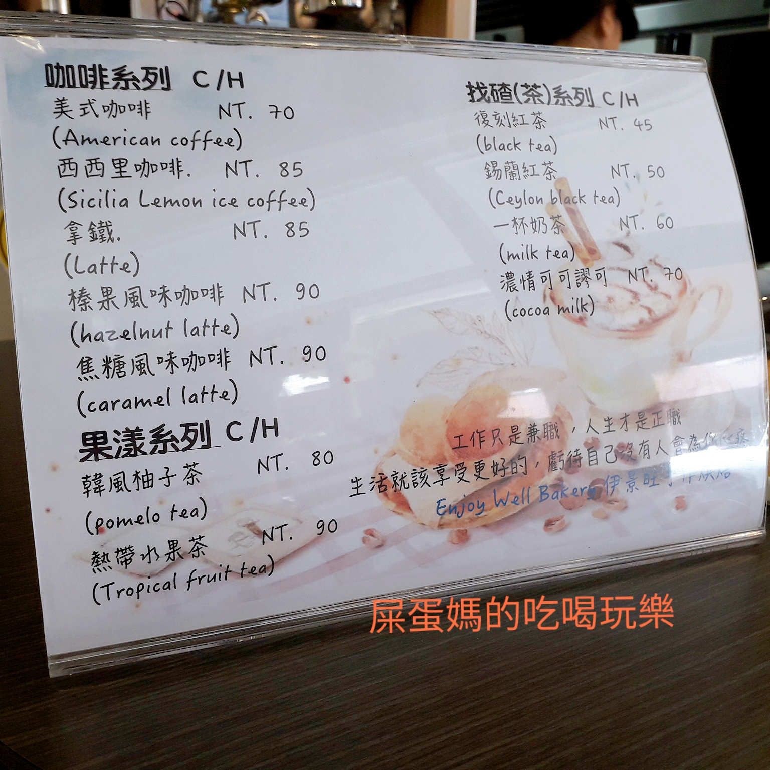 店內還有咖啡飲品,看式簡單的菜單,咖啡、茶類應有盡有,而且單價便宜,果然是精打細算的淑惠!