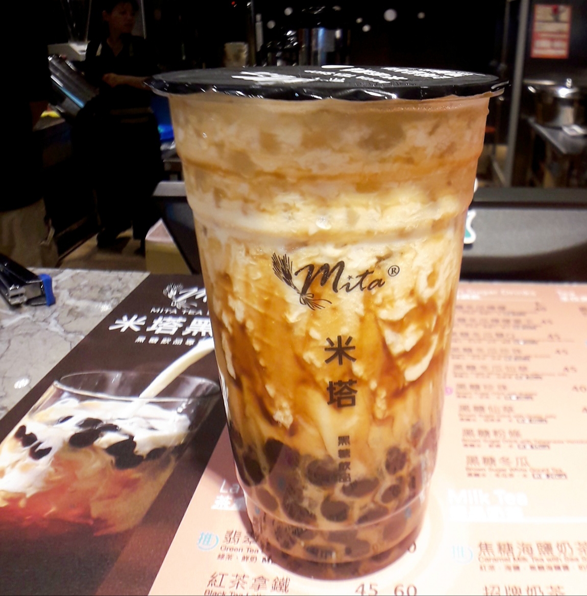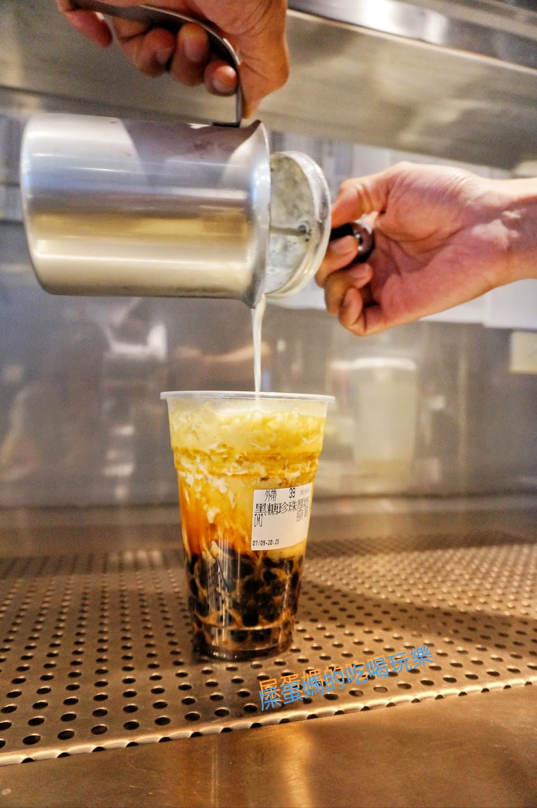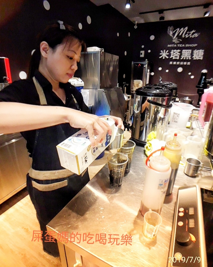 黑糖珍珠鮮奶是米塔黑糖必點的招牌飲品,美麗的鮮奶瀑布,好想趕快喝一口!