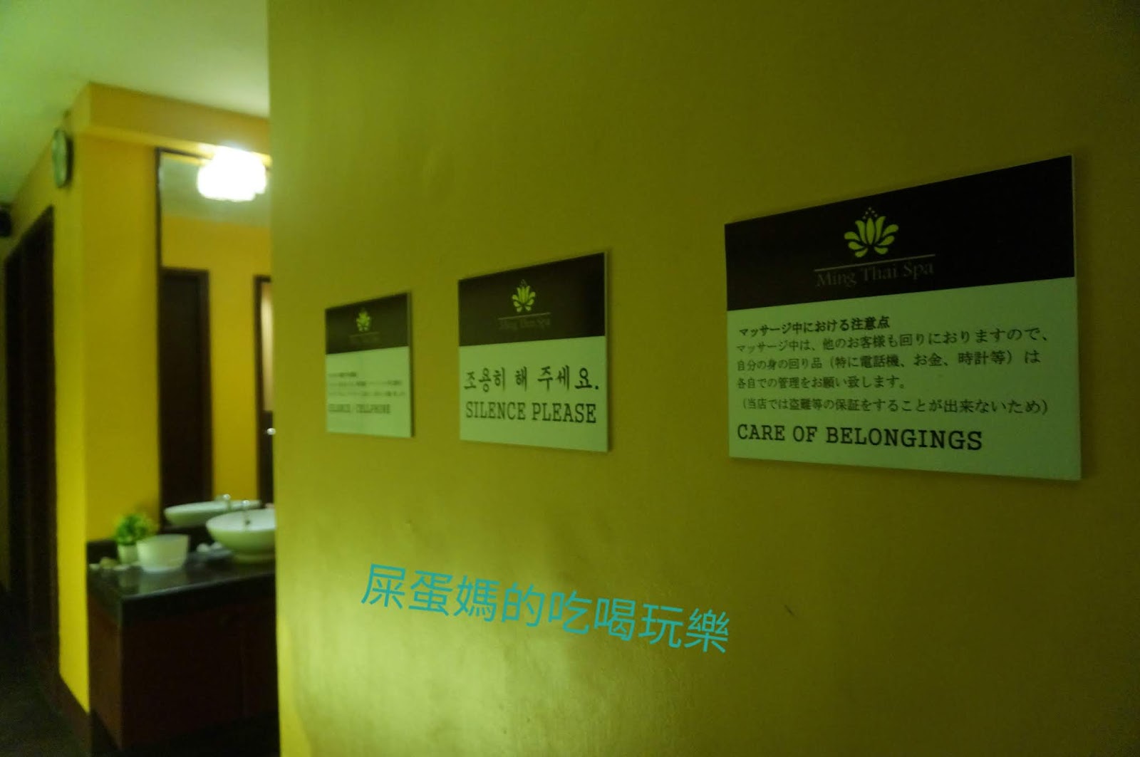 來按摩的客人來自世界各國,Ming Thai SPA貼心的準備多國小標語,提醒大家講話要輕聲細語!(嗯湯吵到別人蛤!)