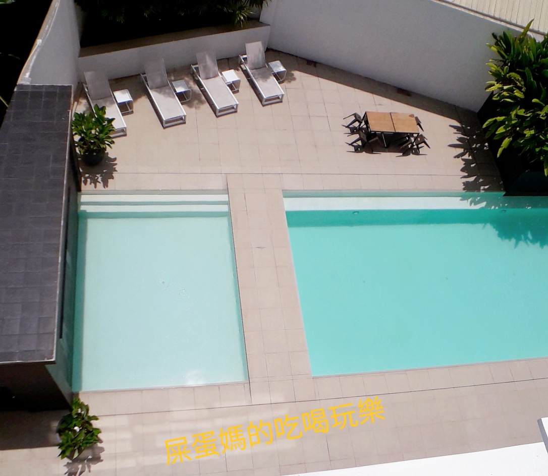 EV 校區的泳池也好美,屎蛋媽爬了好高,才能看見全景!