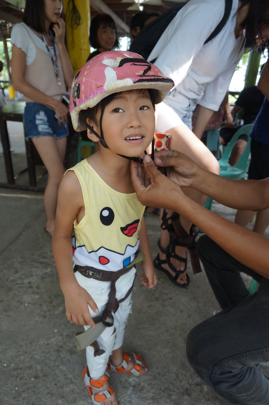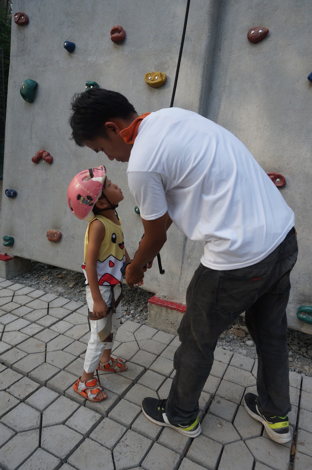 吃完休息一回後,準備Wall Climbing攀岩100Peso/人,這次的裝備又跟高空滑索不一樣哩!