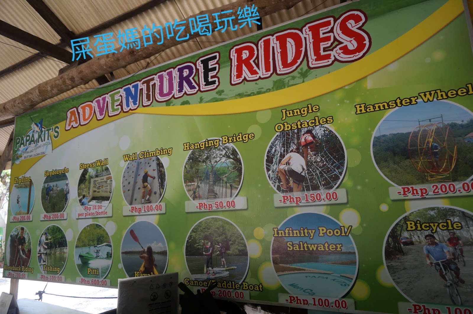 屎蛋媽這次報名的是位於宿霧TAKA HARI校區約一小時車程的PAPAKITS水陸遊樂園!PAPAKITS分成很多部分,有陸地的高空滑索、高空腳踏車、騎馬、攀岩、釣魚、空中滑索和水上的游泳池、小船、獨木舟等好多設施。
