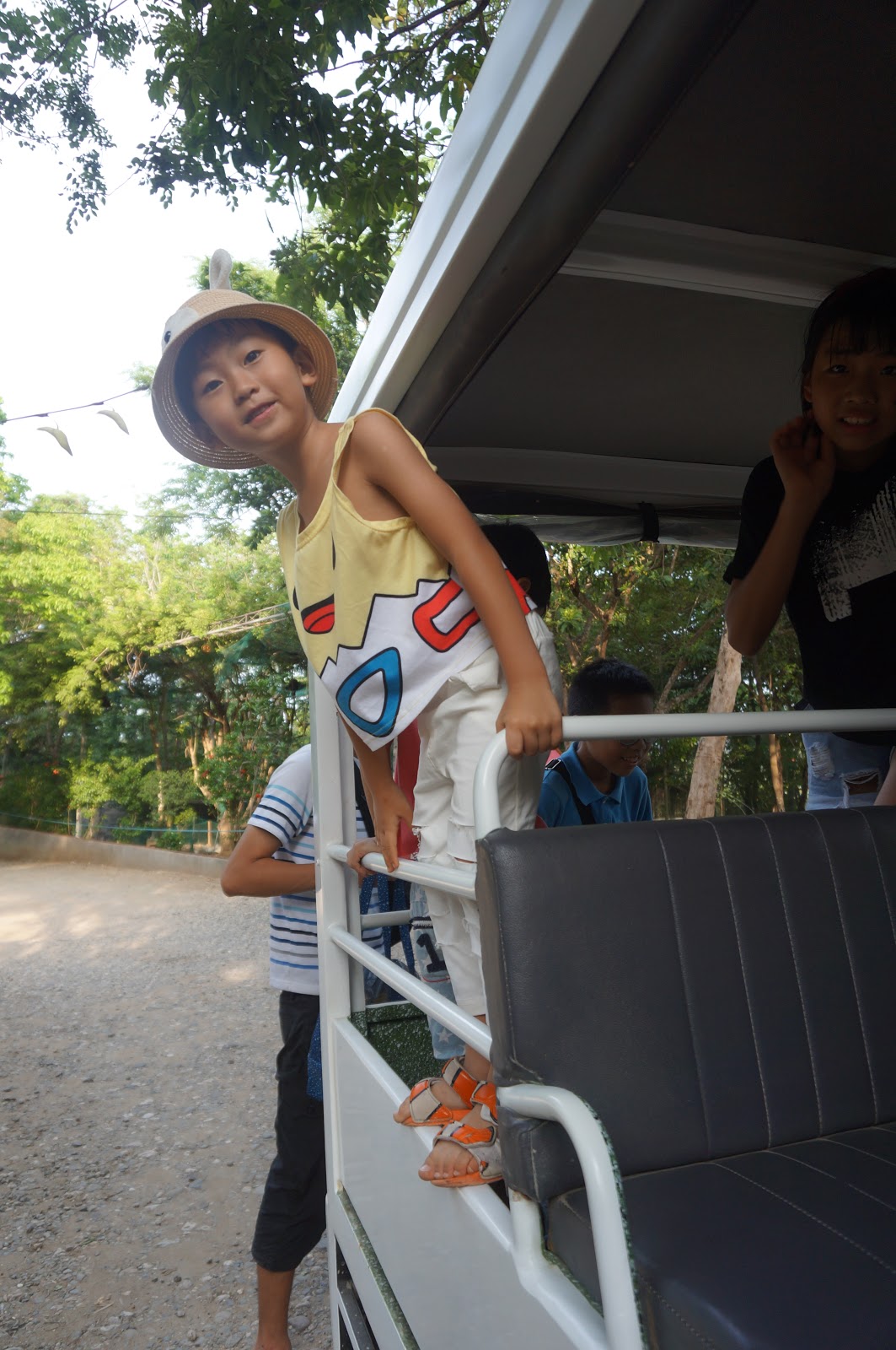 不知不覺就中午啦!搭乘PAPAKITS遊園車準備到下一站-餐廳!吃飯去柳!