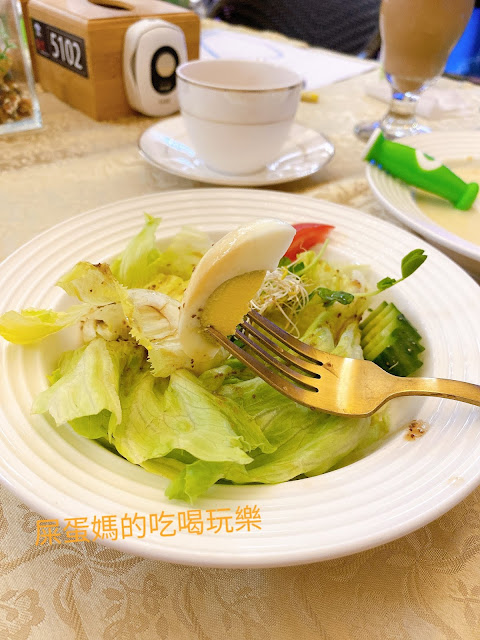 沙拉醬料共四種千島醬、和風醬、油醋醬、優格醬,可任意選擇做搭配,屎蛋媽選的是和風醬,蔬菜新鮮,份量有點太多柳!