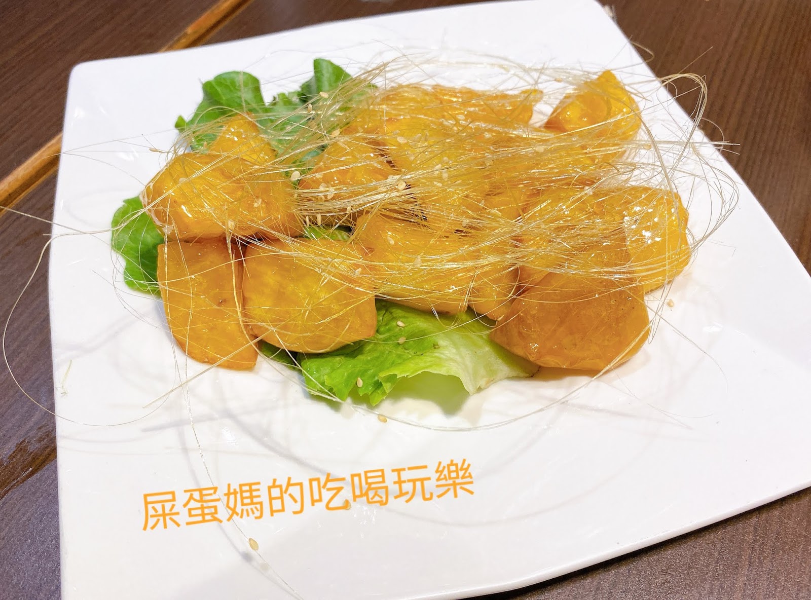 造型像藝術品的拔絲蜜地瓜,是屎蛋的最愛,外脆內軟,一口接一口,全進了屎蛋的肚子裡!