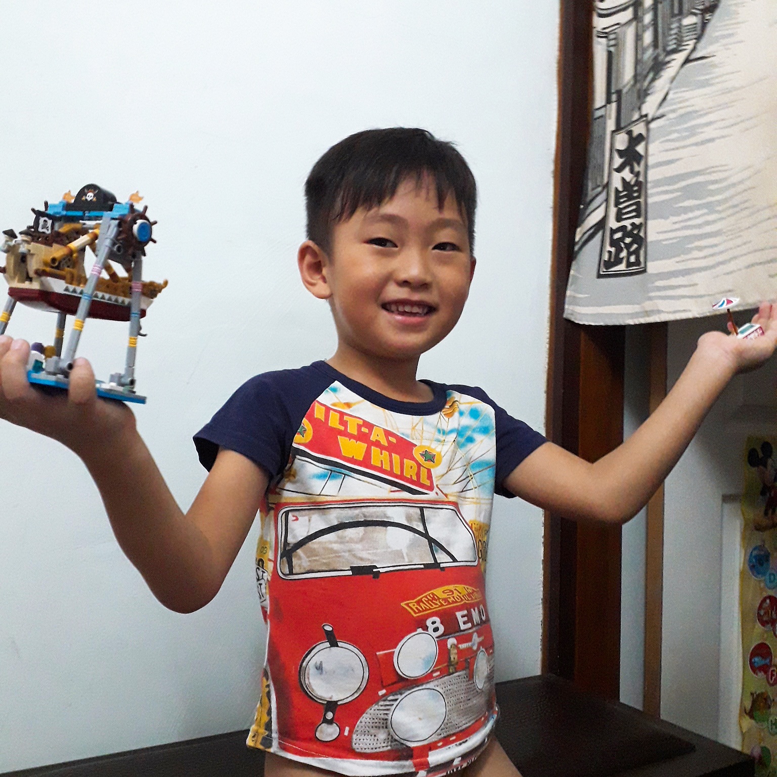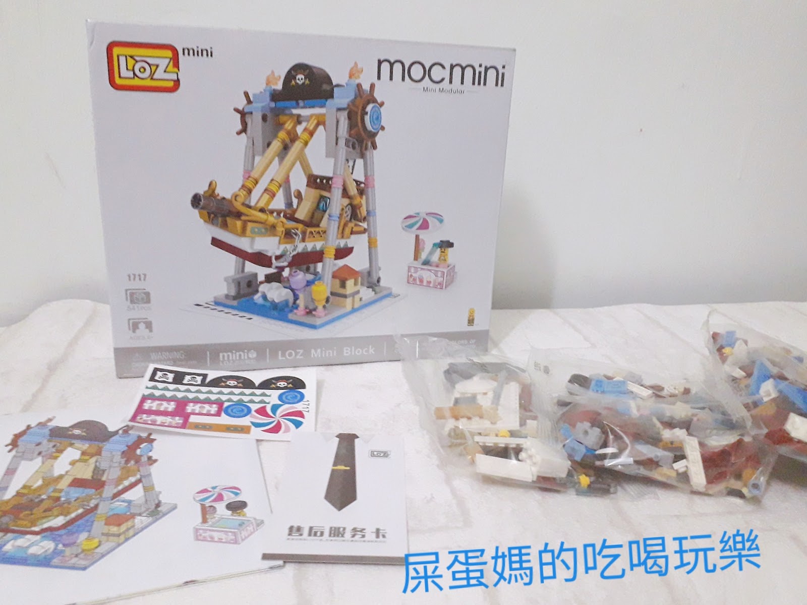 海盜船是5歲屎蛋唯一玩過,最刺激的遊樂設施,瘋狂的屎蛋第一次坐海盜船之後,一直想再玩一次,所以屎蛋媽挑選屎蛋有興趣的遊樂園場景,增加屎蛋的組裝積木的興緻!