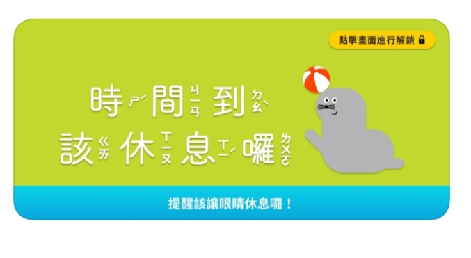 可愛的小海獅畫面提醒一出現,屎蛋就會說:眼睛該休息了!