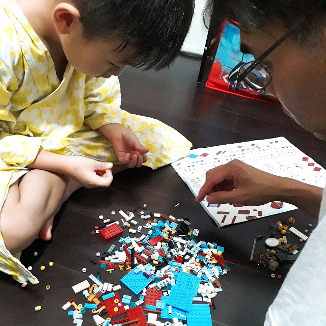 從海盜船的隨性組裝,費時了3個小時,到懂得分類零件,來組裝夾娃娃機,其中除了需要耐心,親子的陪伴也很重要!