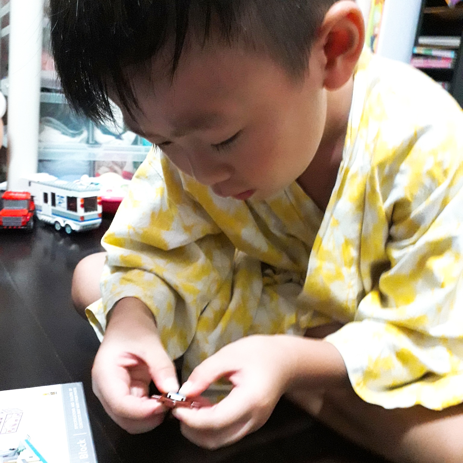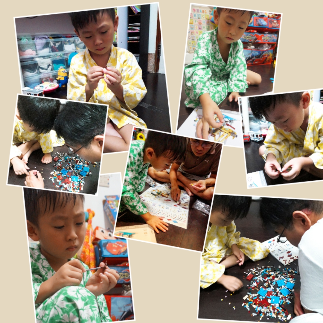 組裝積木的過程中,屎蛋不但專注力可以長逹1個小時,小小休息一下,又會立即加入積木組裝的陣營!整個專注力大提升!