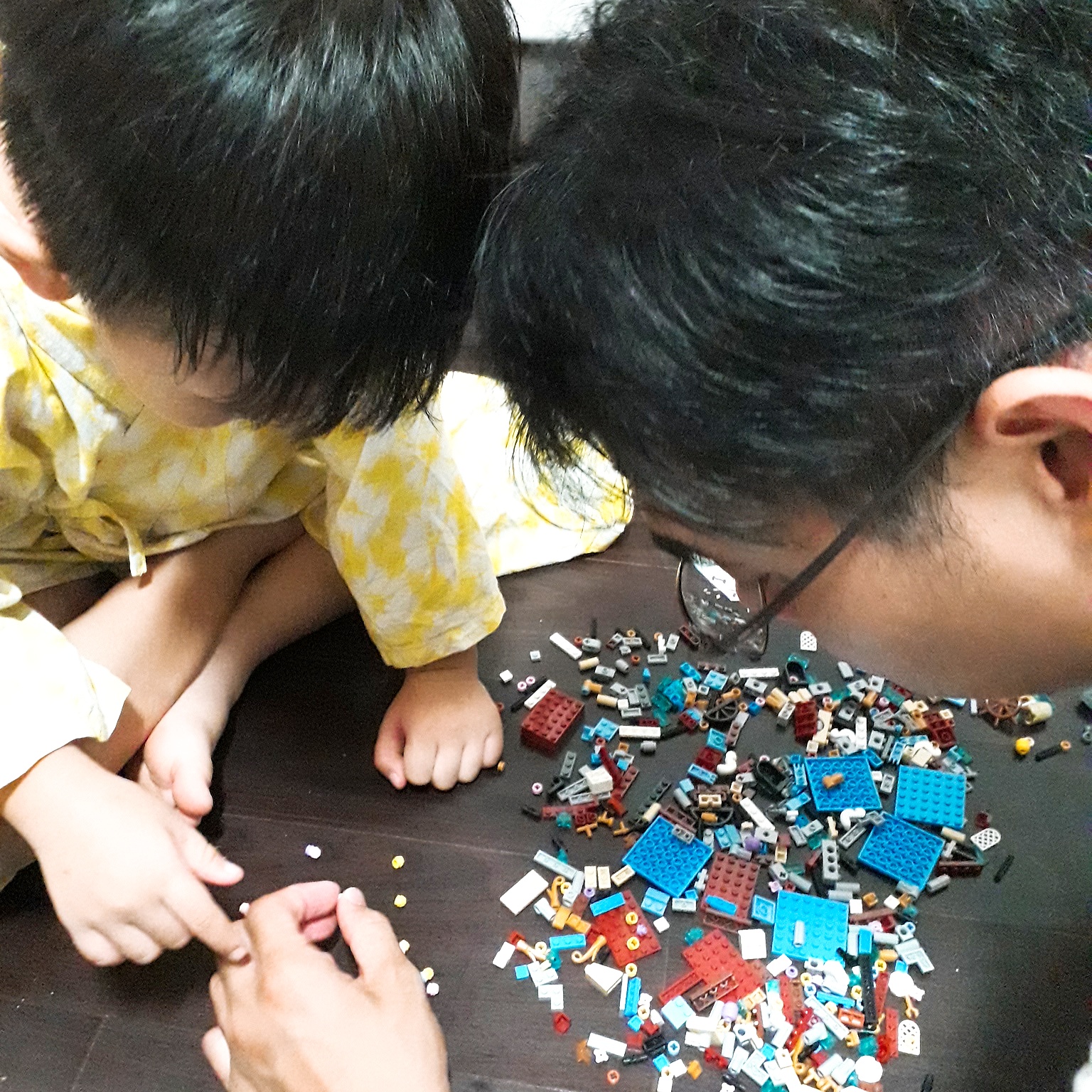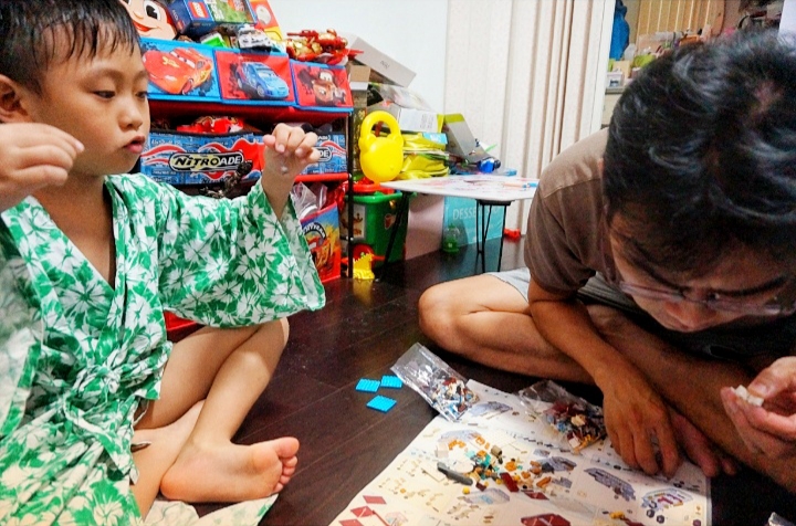 屎蛋爸放下一切工作和屎蛋一起組積木,畫面好溫馨!組裝積木絶對是增進親子感情的最佳途徑!