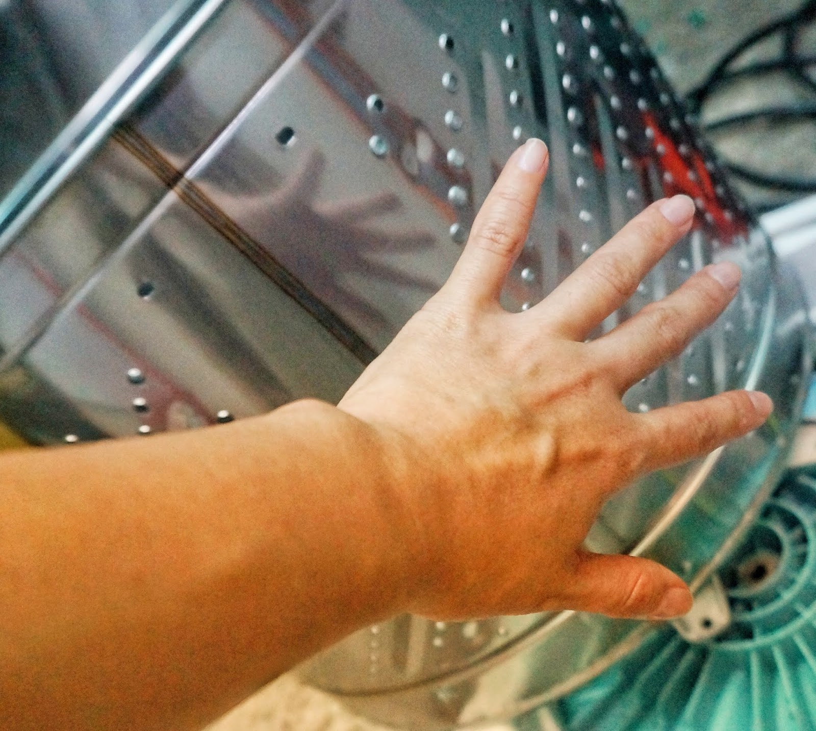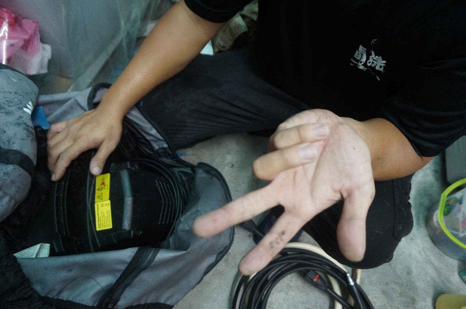 別小看水柱的威力啊!很容易一閃神就噴破手指,超痛滴~小莊先生一天要洗好幾間洗衣機、冷氣機、滾筒、全室除蟎,受傷也得工作啊!小莊先生還有一個即將出世的小寶寶要養啊!(屎蛋媽好愛聊!哈)