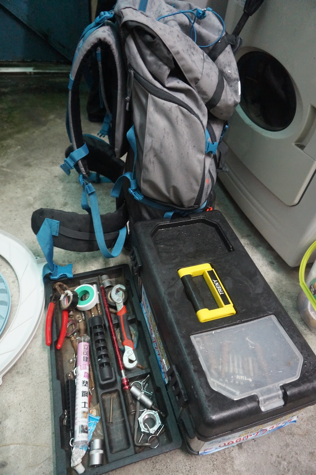 依約到逹的台南晶洗清潔中心的莊先生,拿出清洗的行頭(嚇!根本是抓鬼特攻隊的行頭),想必屎蛋的老師有稍微描述了~屎蛋媽家6年未洗的洗衣機,汙垢頑強啊!