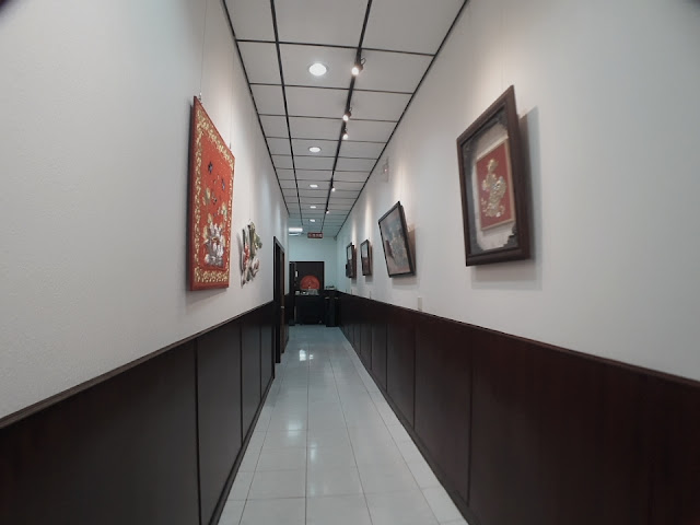 上豐富海產粥的餐廳好大,連要去廁所的通道也是滿滿的刺繡作品!