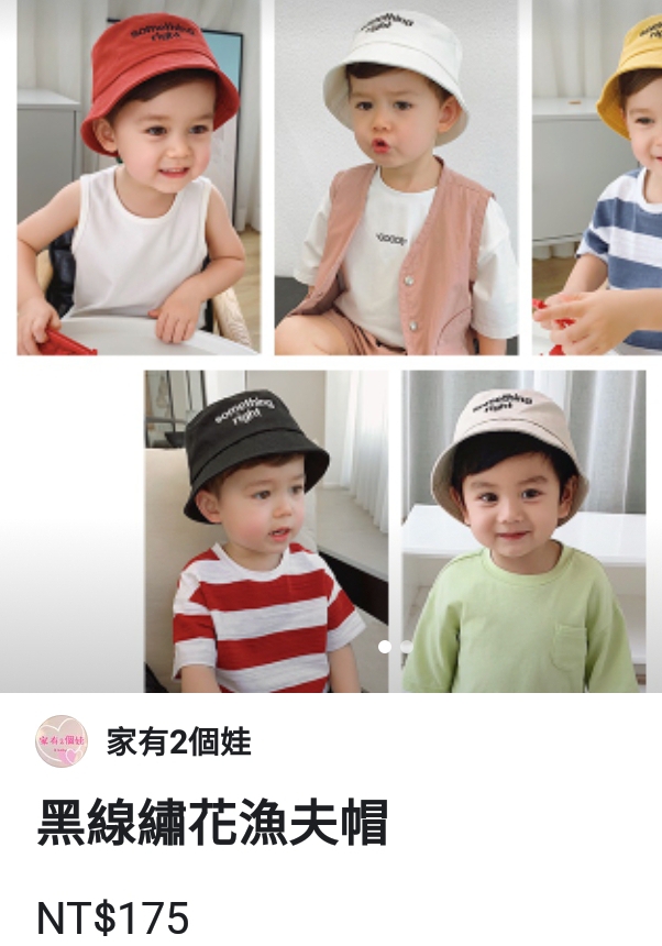 黑線繡花漁夫帽165元,好多顏色,屎蛋媽覺得白色超好搭!