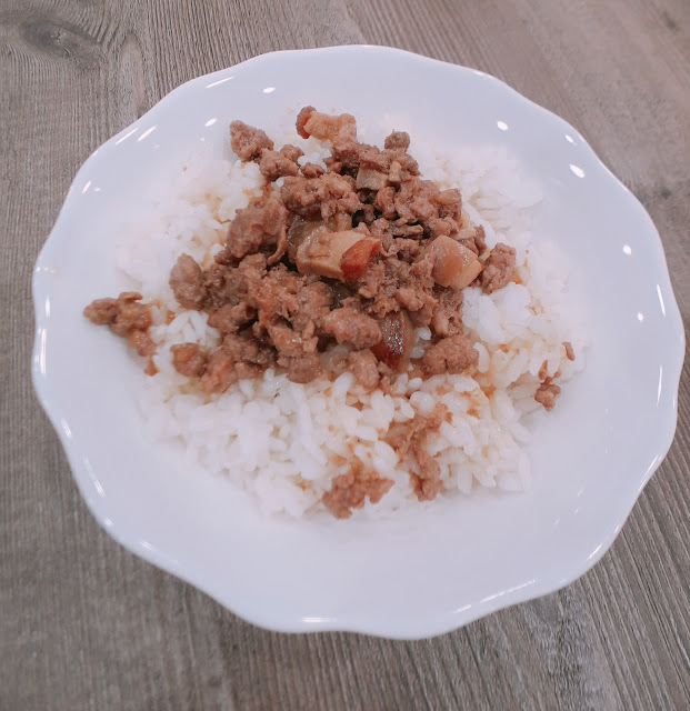 肉燥飯20元,上豐富海產粥的肉燥是師傅親自炒的古早味肉燥喔!肉燥肥肉不多,所含的油脂都是由肉燥逼出,沒有另外加油拌炒,好搞工(台語)啊!