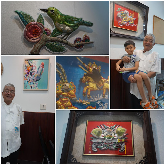 一進到上豐富海產粥,映入眼簾的是府城光彩繡莊的刺繡藝術品,滿滿的刺繡作品,要價4萬至10幾萬不等。