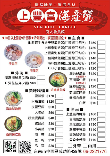 [美食]台南五星級海產粥~上豐富海產粥,豐富您的味覺饗宴