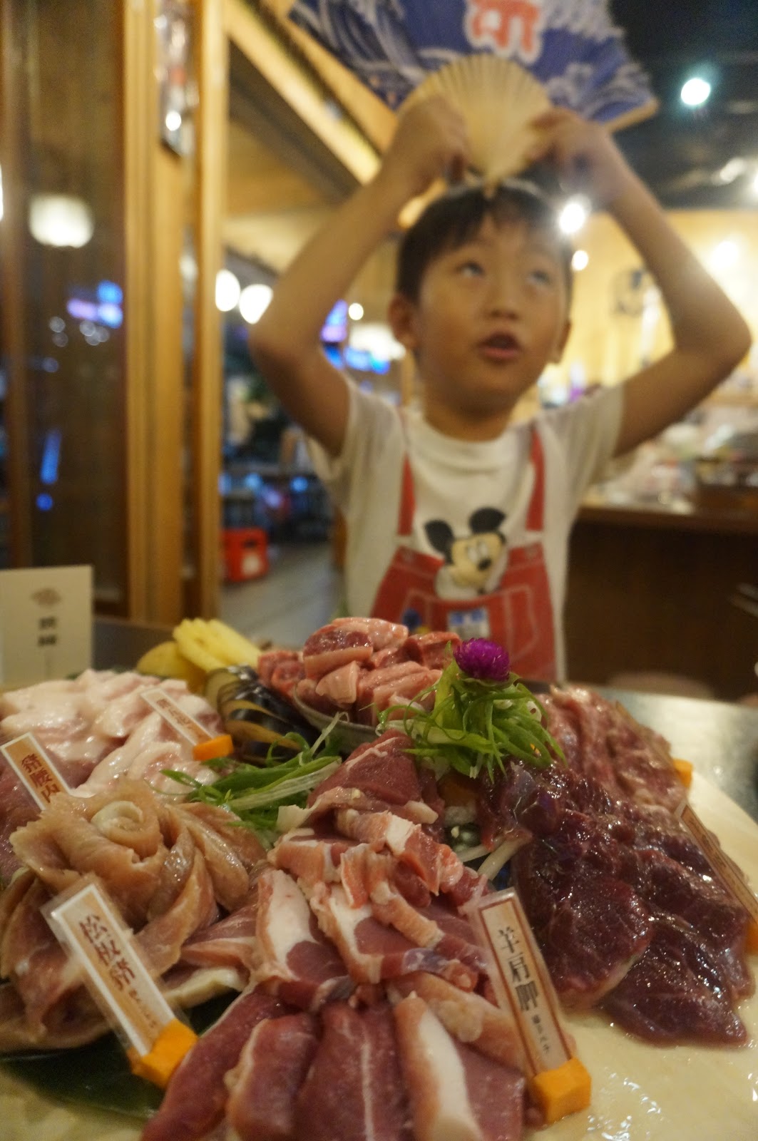 鉄輪ジンギスカン的肉盤現點現切,每份還附有肉品標示牌,很適合屎蛋媽這樣健忘的婦人!(好吃就可以立刻加碼點!)